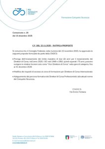 Si comunica che, il Consiglio Federale, nella riunione del 22 novembre 2025, ha approvato le seguenti proposte formulate da parte della CNDCS: