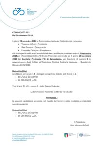 Il giorno 21 novembre 2024 la Commissione Nazionale Elettorale, così composta: