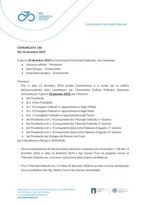 - Che in data 12 dicembre 2024 questa Commissione si è riunita per la verifica dell’ammissibilità delle candidature per l’Assemblea Elettiva Ordinaria Nazionale convocata per il giorno 19 gennaio 2025, per l’elezione