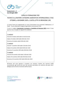 CORSO DI FORMAZIONE PER TECNICO ALLENATORE CATEGORIE AGONISTICHE INTERNAZIONALI (TA3) OTTOBRE e NOVEMBRE 2025 a CASTELLETTO DI BRENZONE (VR)