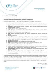 Facendo seguito al comunicato n. 17, si pubblica di seguito l’elenco dei candidati ammessi al corso: