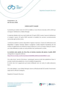 Il presente per rendere noto che l’UCI ha indetto un corso OnLine riservato ai DCI e DCP per conseguire l’abilitazione a Safety Manager.