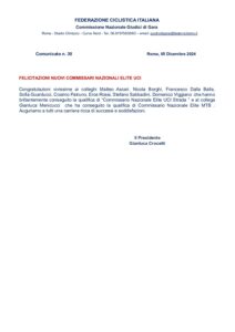 Congratulazioni vivissime ai colleghi Matteo Ascari, Nicola Borghi, Francesco Dalla Balla, Sofia Guarducci, Cosimo Patruno, Eros Rossi, Stefano Sabbadini, Domenico Viggiano che hanno brillantemente conseguito la qualifica di “Commissario Nazionale Elite UCI Strada ” e al collega Gianluca Menicucci che ha conseguito la qualifica di Commissario Nazionale Elite MTB . Auguriamo a tutti una carriera ricca di successi e soddisfazioni.