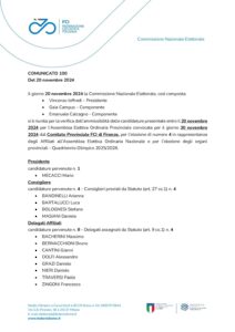 Il giorno 20 novembre 2024 la Commissione Nazionale Elettorale, così composta: