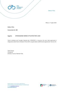 Vista la Delibera del Consiglio Federale del 17/05/2025, si comunica che sono state approvate le Integrazione delle Norme Attuative Pista 2025 a seguito delle modifiche del regolamento Tecnico UCI.
