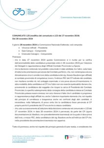 - che, solo successivamente all’adozione della decisione contenuta nel comunicato n.123 del 27 novembre 2024, in data 28 novembre 2024 è pervenuta, da parte del CR Liguria documentazione (si ribadisce, non precedentemente trasmessa) con la quale si dava prova dell’invio, a mezzo PEC, della candidatura del sig. Baudone anche all’indirizzo del CP che, nelle precedente documentazione trasmessa non appariva;