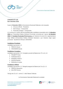 Il giorno 5 dicembre 2024 la Commissione Nazionale Elettorale, così composta: