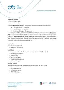 Il giorno 14 novembre 2024 la Commissione Nazionale Elettorale, così composta: