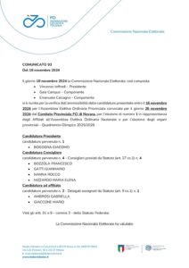 Il giorno 18 novembre 2024 la Commissione Nazionale Elettorale, così composta: