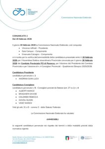 Il giorno 20 febbraio 2026 la Commissione Nazionale Elettorale, così composta: