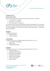 Il giorno 23 novembre 2024 la Commissione Nazionale Elettorale, così composta: