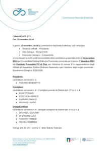 Il giorno 22 novembre 2024 la Commissione Nazionale Elettorale, così composta:
