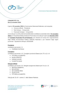 si è riunita per la verifica dell’ammissibilità delle candidature presentate entro il 21 novembre 2024 per l’Assemblea Elettiva Ordinaria Provinciale convocata per il giorno 1° dicembre 2024 dal Comitato Provinciale FCI di Pordenone, per l’elezione di numero 2 in rappresentanza degli Affiliati all’Assemblea Elettiva Ordinaria Nazionale e per l’elezione degli organi provinciali – Quadriennio Olimpico 2025/2028.