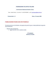 Si rende noto che sul sito federale, alla pagina dei giudici di gara, è stata pubblicata la seguente documentazione: