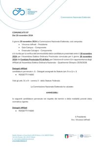 Il giorno 20 novembre 2024 la Commissione Nazionale Elettorale, così composta: