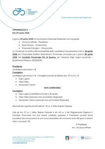 si è riunita per la verifica dell’ammissibilità delle candidature da presentare entro il 18 aprile 2026 per l’Assemblea Elettiva Straordinaria Provinciale convocata per il giorno 28 aprile 2026 dal Comitato Provinciale FCI di Savona, per l’elezione degli organi provinciali – Quadriennio Olimpico 2025/2028.