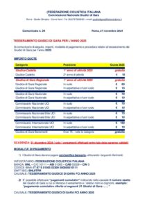 B); le eventuali richieste di tesseramento per i Giudici di Gara nati prima del 1950 entro il giorno 5 gennaio 2025;
