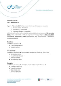 Il giorno 1° dicembre 2024 la Commissione Nazionale Elettorale, così composta: