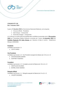 Il giorno 1° dicembre 2024 la Commissione Nazionale Elettorale, così composta: