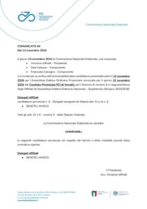 Il giorno 13 novembre 2024 la Commissione Nazionale Elettorale, così composta: