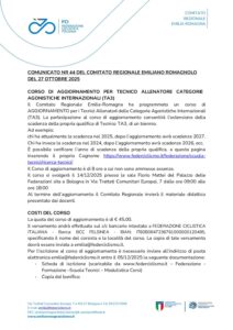 Corso di Aggiornamento TA3 di 8 ore a BOLOGNA, organizzato dal Comitato Regionale Emilia-Romagna