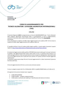 Corso di Aggiornamento TA3 di 8 ore ONLINE con Didattica a Distanza, organizzato dal Comitato Regionale Lazio
