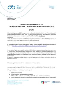 Corso di Aggiornamento TA2 di 8 ore ONLINE con Didattica a Distanza, organizzato dal Comitato Regionale Lazio