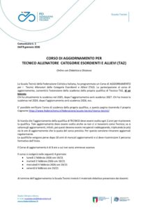 Le iscrizioni andranno inviate entro il 1 febbraio 2026 a scuolatecnici@federciclismo.it seguendo le modalità indicate nel comunicato di indizione qui sotto scaricabile. Il Comitato Regionale si riserva di chiudere anticipatamente le iscrizioni, al raggiungimento del numero massimo di domande.