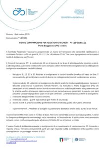 Il corso si svolgerà sia con lezioni pratiche in presenza a Ponte Buggianese (PT), nella sede indicata nel comunicato di indizione qui sotto scaricabile che lezioni teoriche online con didattica a distanza per cui è necessario essere muniti di pc, webcam attiva durante le lezioni e collegamento internet.