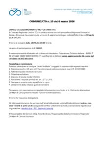 Il Comitato Regionale Umbria FCI, in collaborazione con la Commissione Regionale Direttori di Corsa e Sicurezza, ha programmato un corso di formazione per motostaffette il giorno 10 aprile 2026 ONLINE.