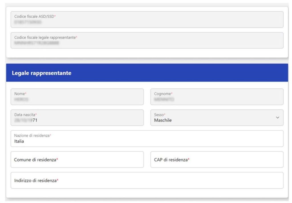 - inserire i dati anagrafici ed i contatti del legale rappresentante;