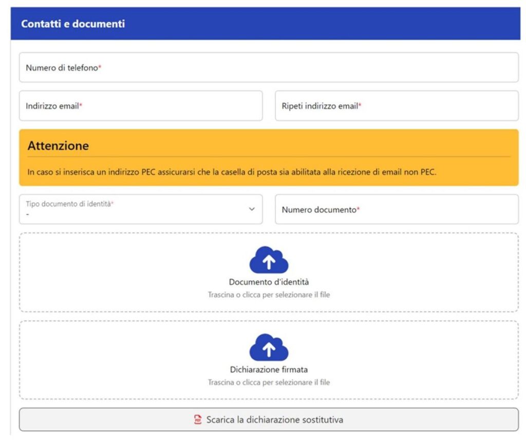 - scaricare il modulo per la dichiarazione sostitutiva, compilarlo, firmarlo e caricarlo online;
