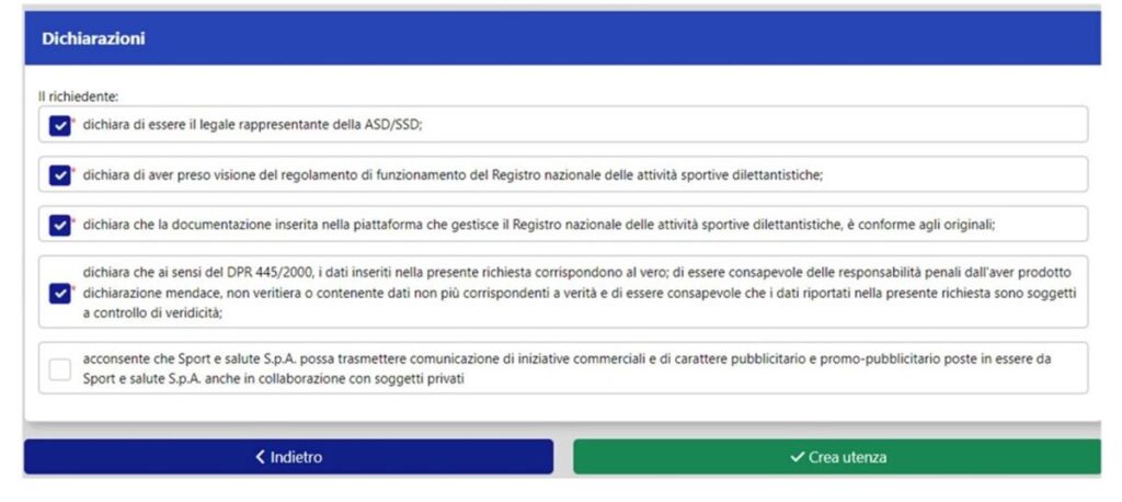 Di seguito una descrizione sintetica degli step da seguireย per i legali rappresentanti di ASD/SSD affiliate: