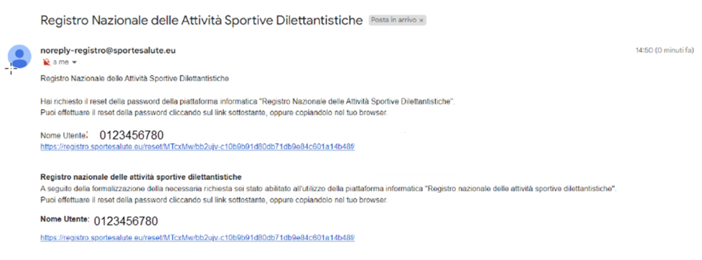 Terminata lโoperazione lโutente riceverร istruzioni via e-mail per la creazione della password.