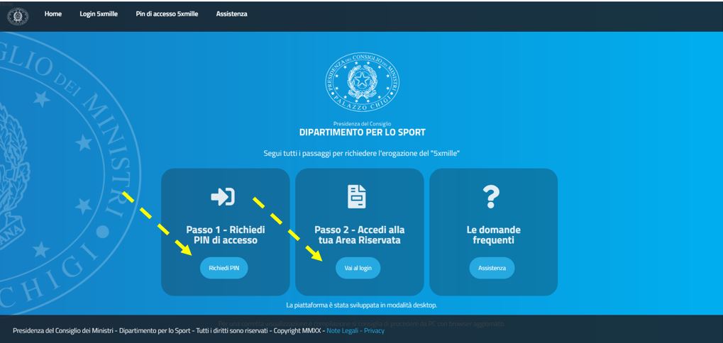 Le associazioni sportive, una volta iscritte nell’elenco dei beneficiari “permanenti”, dovranno registrare i propri dati e comunicare un codice Iban relativo ad un conto corrente ad esse intestato mediante apposita piattaforma web disponibile sul sito del Dipartimento per lo sport (https://www.sport.governo.it/it/notizie/online-la-nuova-piattaforma-dedicata-al-5-x-1000/).